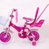 Этот велосипед имеет оригинальный дизайн и высокое качество материалов используемых для его производства. Покрышки этого велосипеда из высококачественной резины, внутренние камеры изготовлены из бутила (BUTYL) – это очень прочный и высококачественный материал. Велосипед оснащен очень прочным и надежным металлическим задним багажником с мягким сидением, мягкой передней корзиной и задней спинкой, которая находится за сидением, что позволяет ребенку чувствовать себя более комфортно и уверенно находясь за рулем велосипеда. Оригинальный дизайн и декоративные украшения придадут особенно яркий и красивый вид велосипеда, выгодно отличающий Ваш велосипед среди других велосипедов.